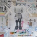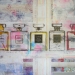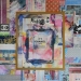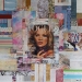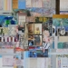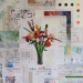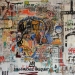 Kleurrijk abstract modern mixed media schilderij, opgebouwd uit verschillende lagen en met diverse materialen.